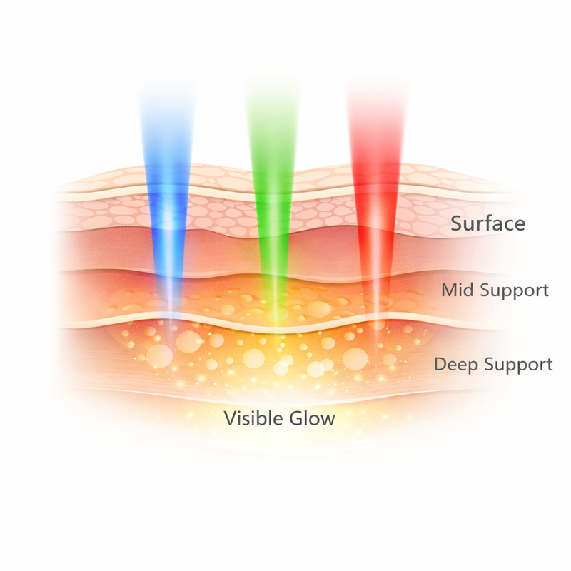 LED light delivers targeted wavelengths that interact with the skin at different visible depths. With consistent use, this process supports smoother-looking texture and visible radiance.